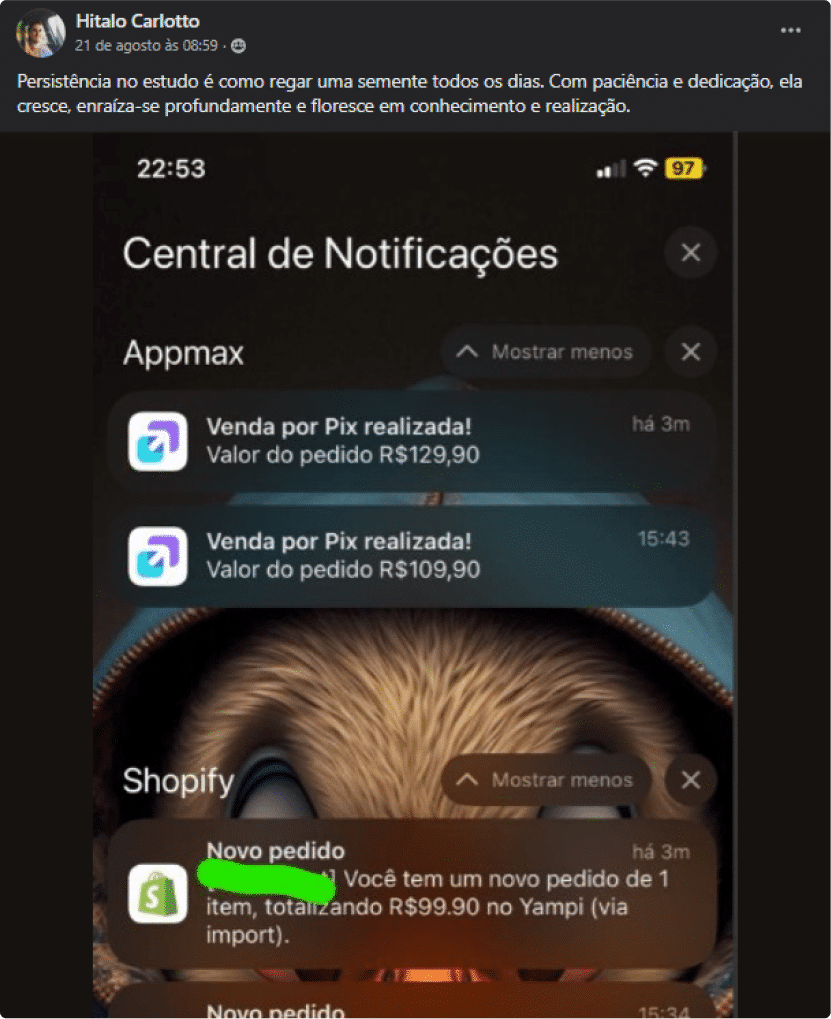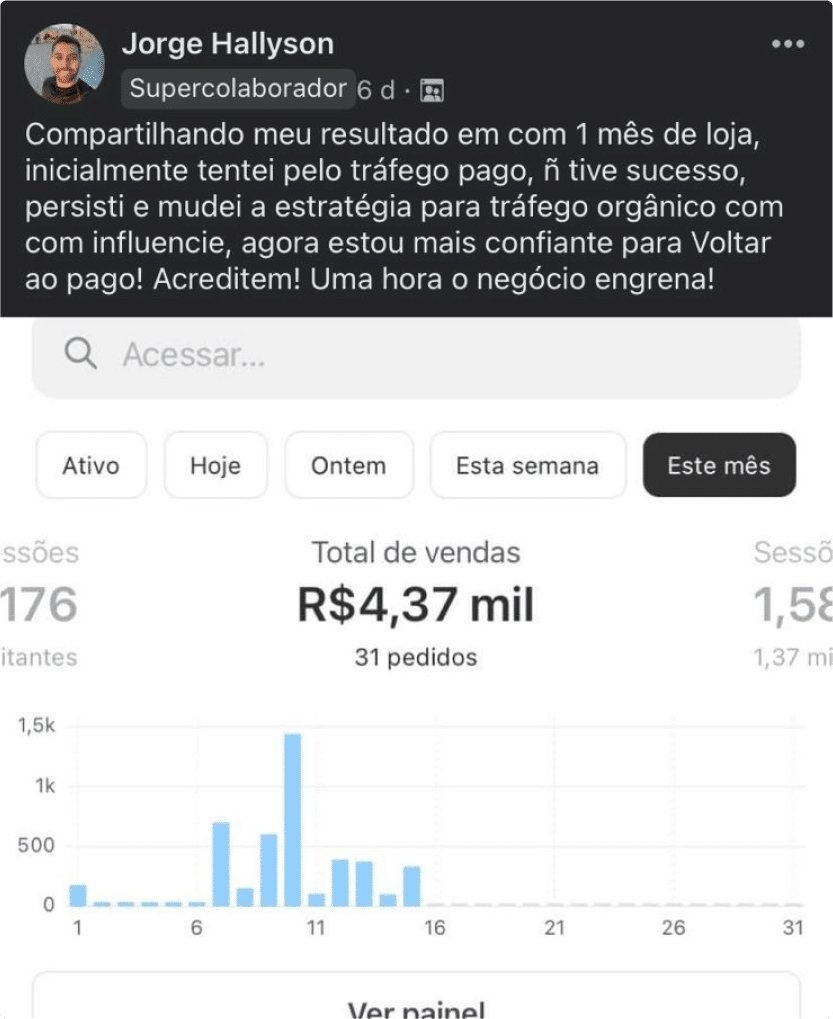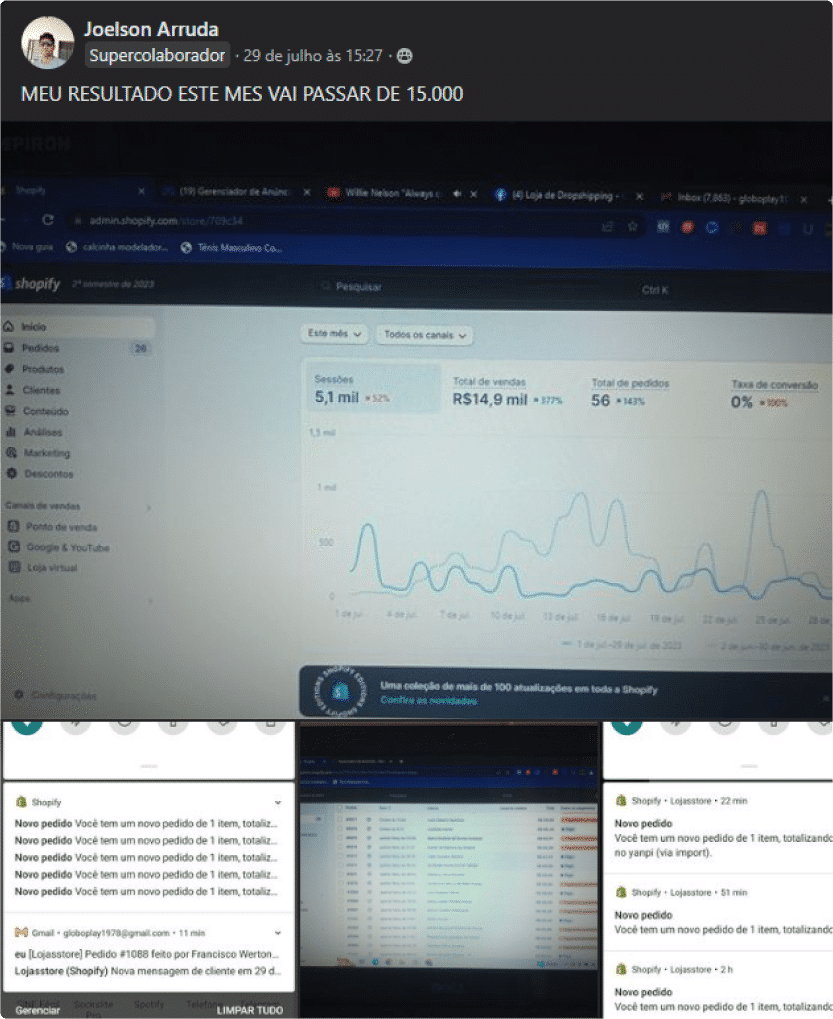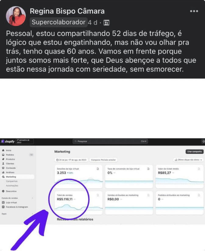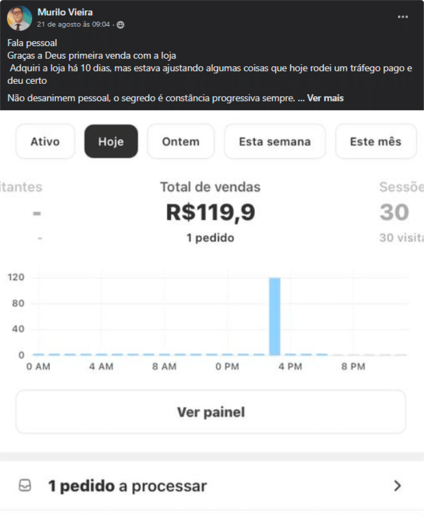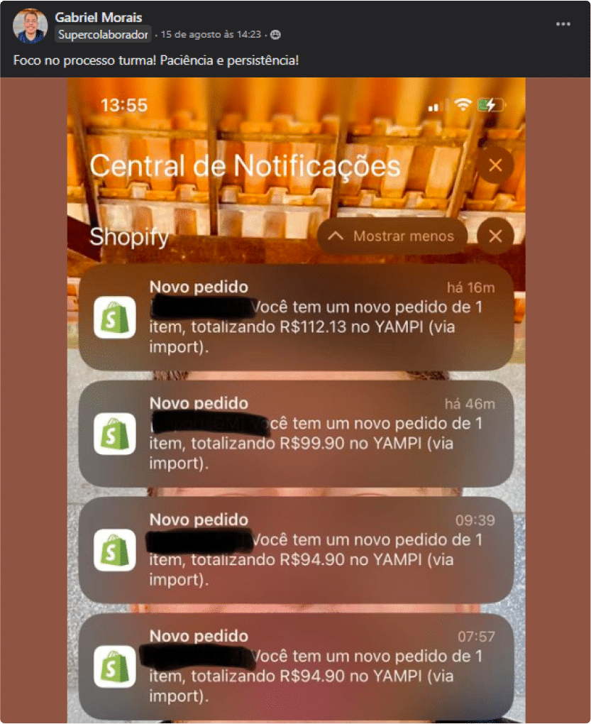 Porém, em três meses, se você já estiver aplicado tudo que é ensinado no curso e nas mentorias, você já vai ter uma operação consolidada para pagamento da Shopify.