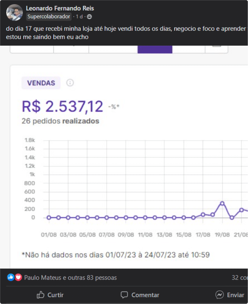 Bom, tudo isso vai depender da sua operação e dedicação sobre a atividade. Para isso além da loja você recebe os conteúdos corretos para escalar e ter resultados com a sua estrutura, como através do nosso curso que abrange do baixo ao avançado e pelas nossas mentoria também.